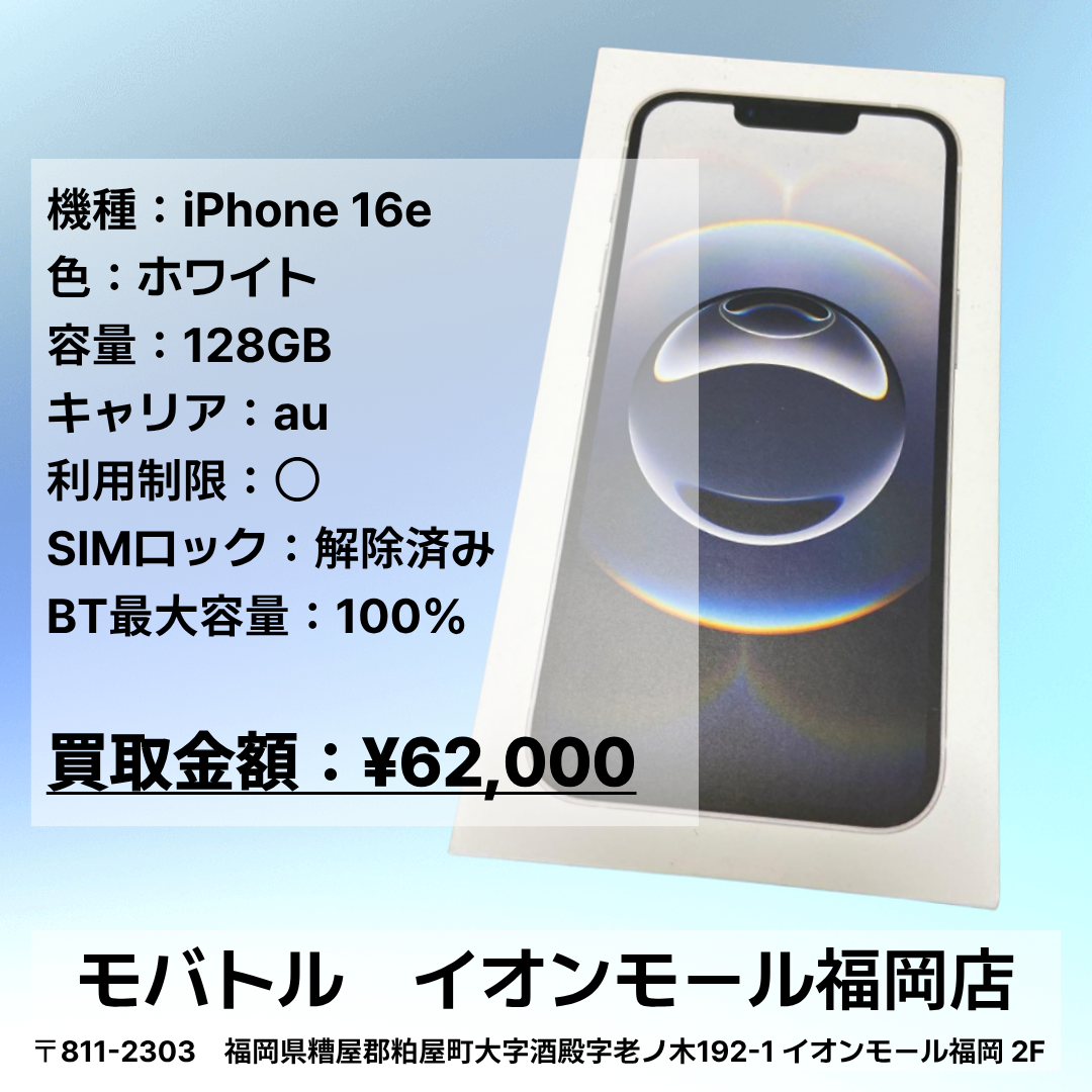 新品未開封品のiPhone 16eを買い取りいたしました!【モバトルイオンモール福岡店】