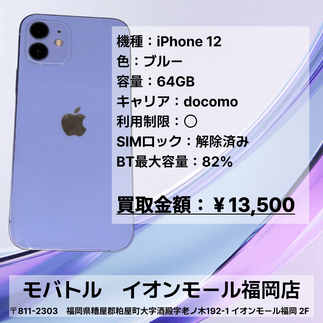 iPhone 12を買取いたしました📱【モバトルイオンモール福岡店】